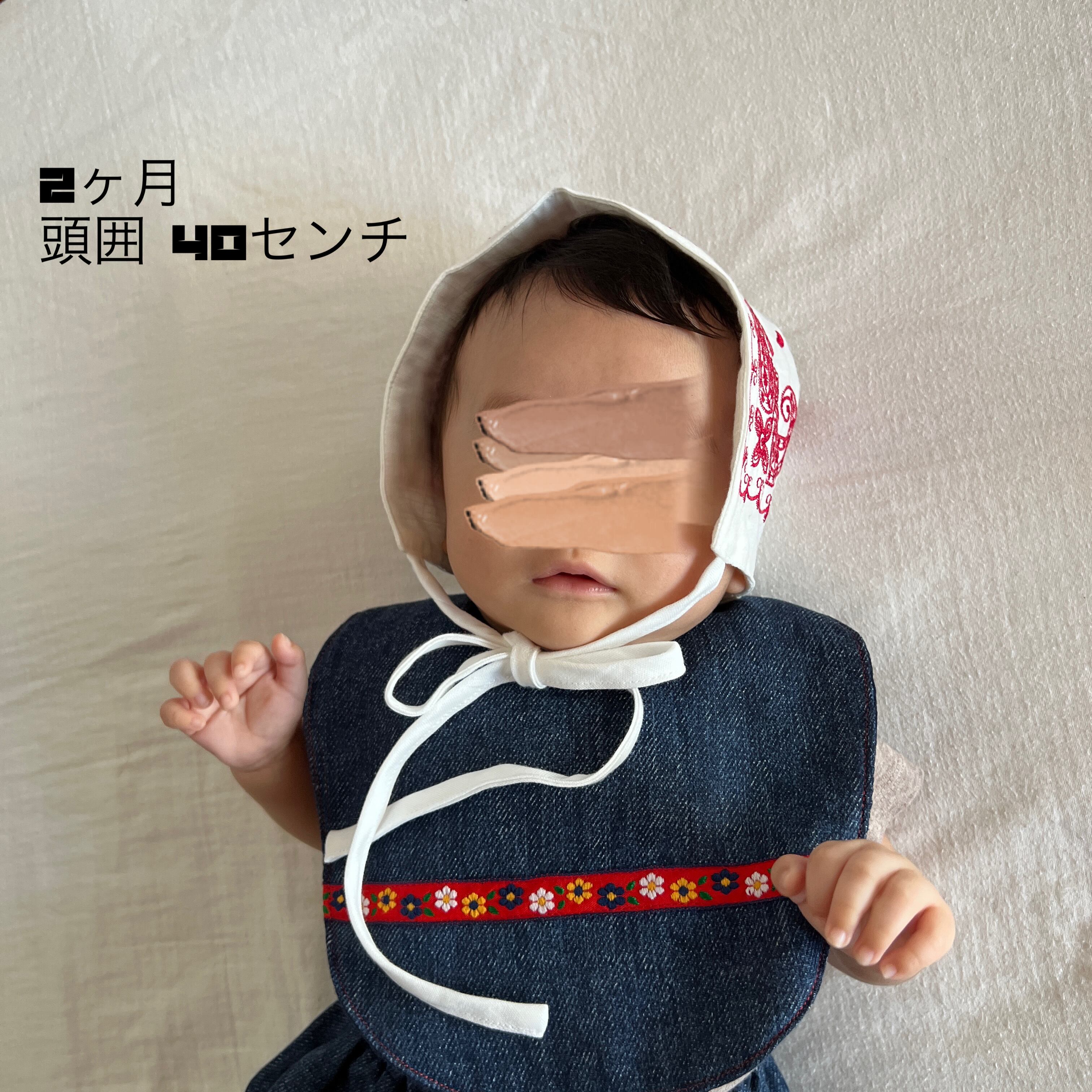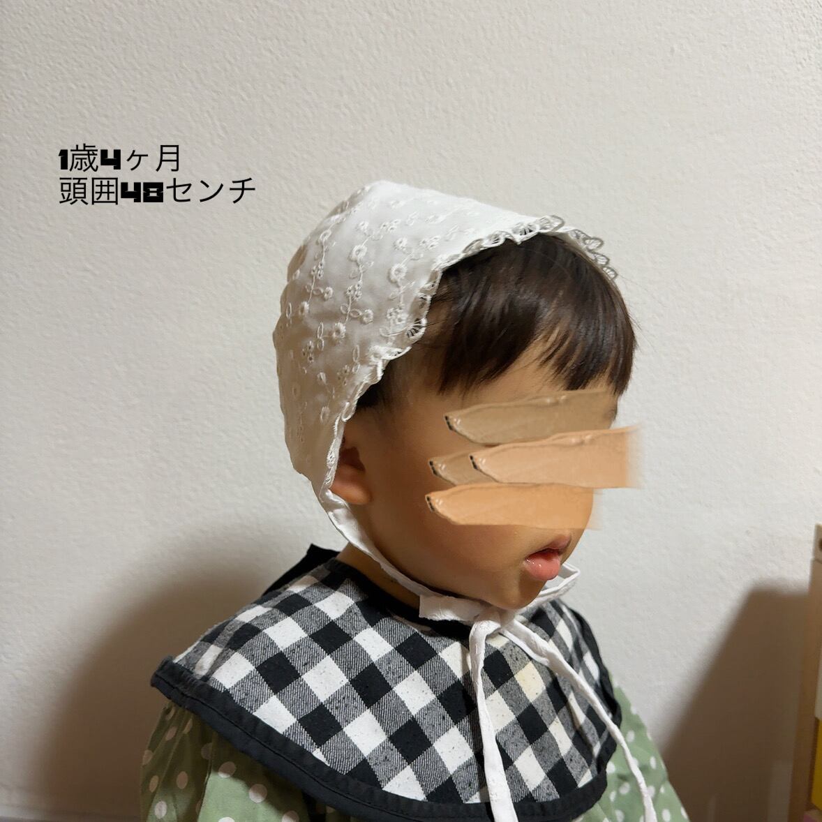 ✿写真は同じ型、同じサイズのボンネットを1歳4ヶ月さんが着用したものを含んでおります。