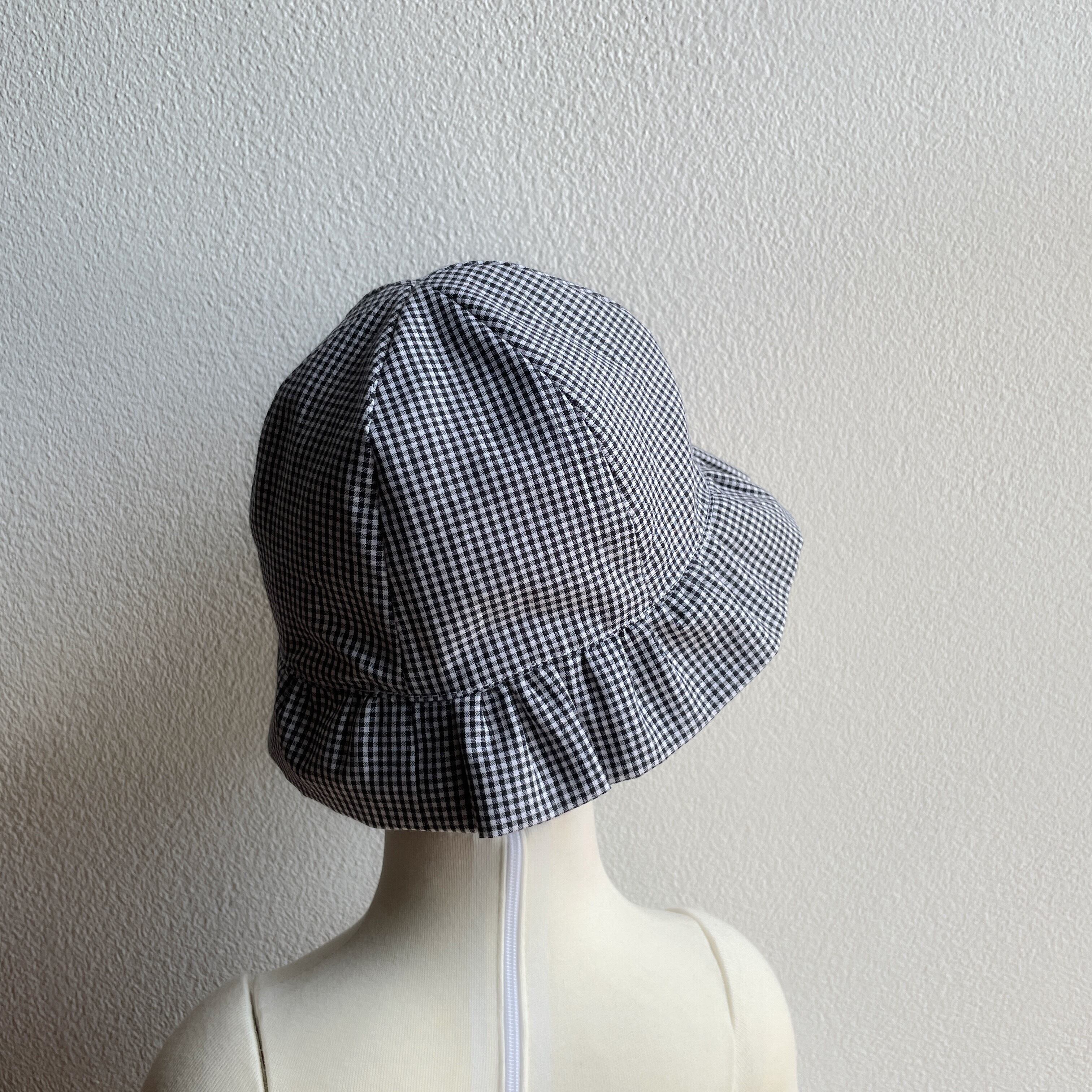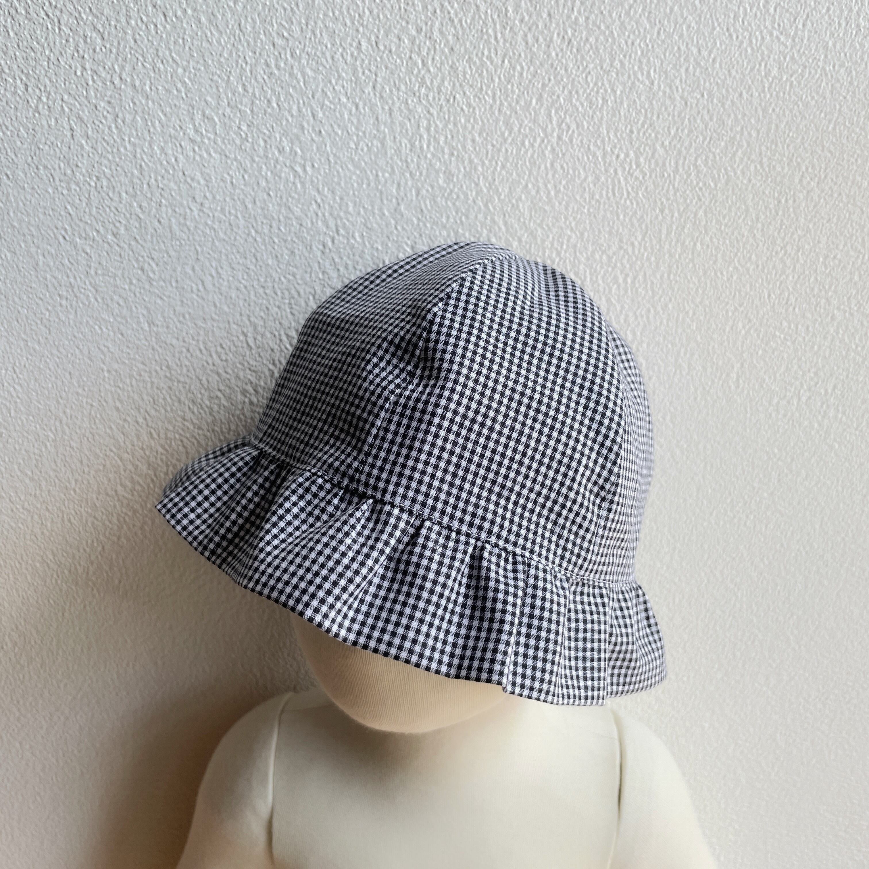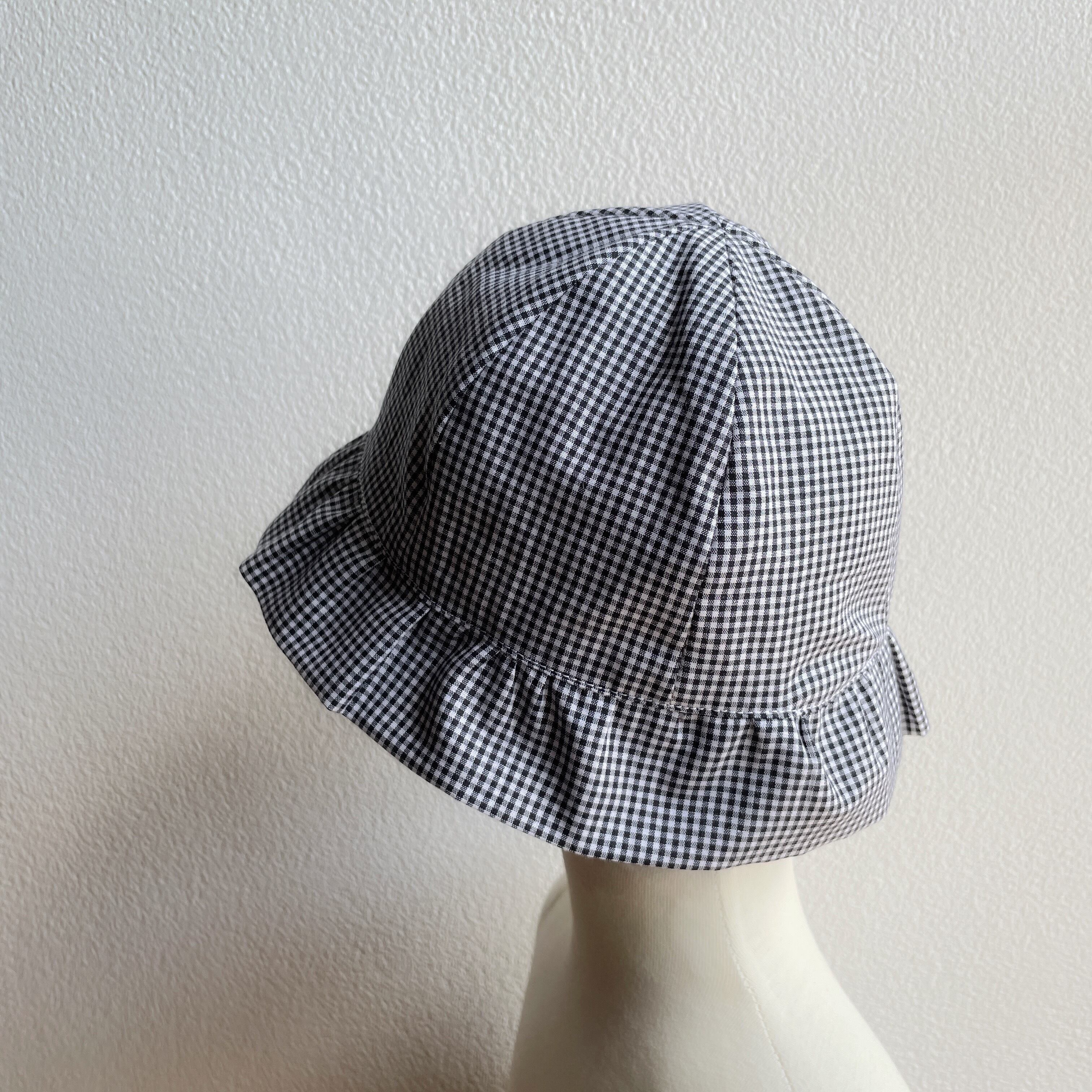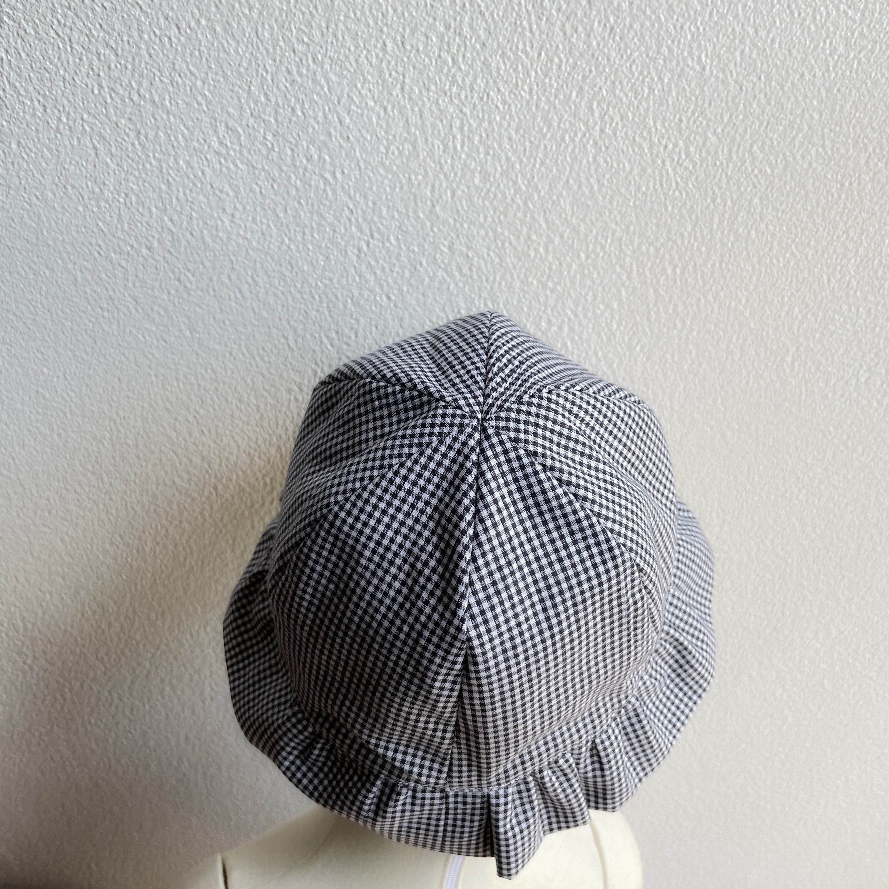 白黒の細かいギンガムチェックのやわらかく軽いコットンを使用した赤ちゃん帽子です。