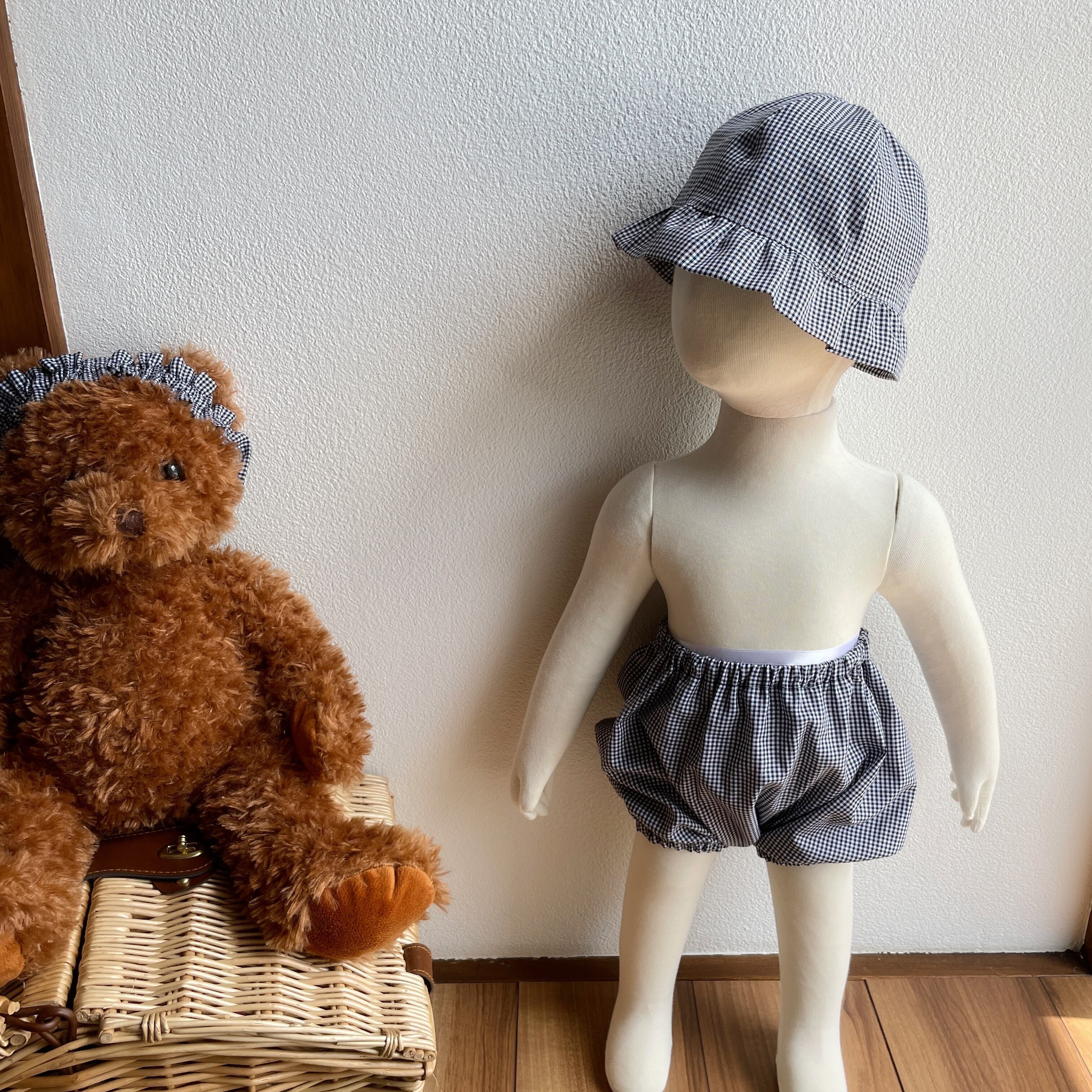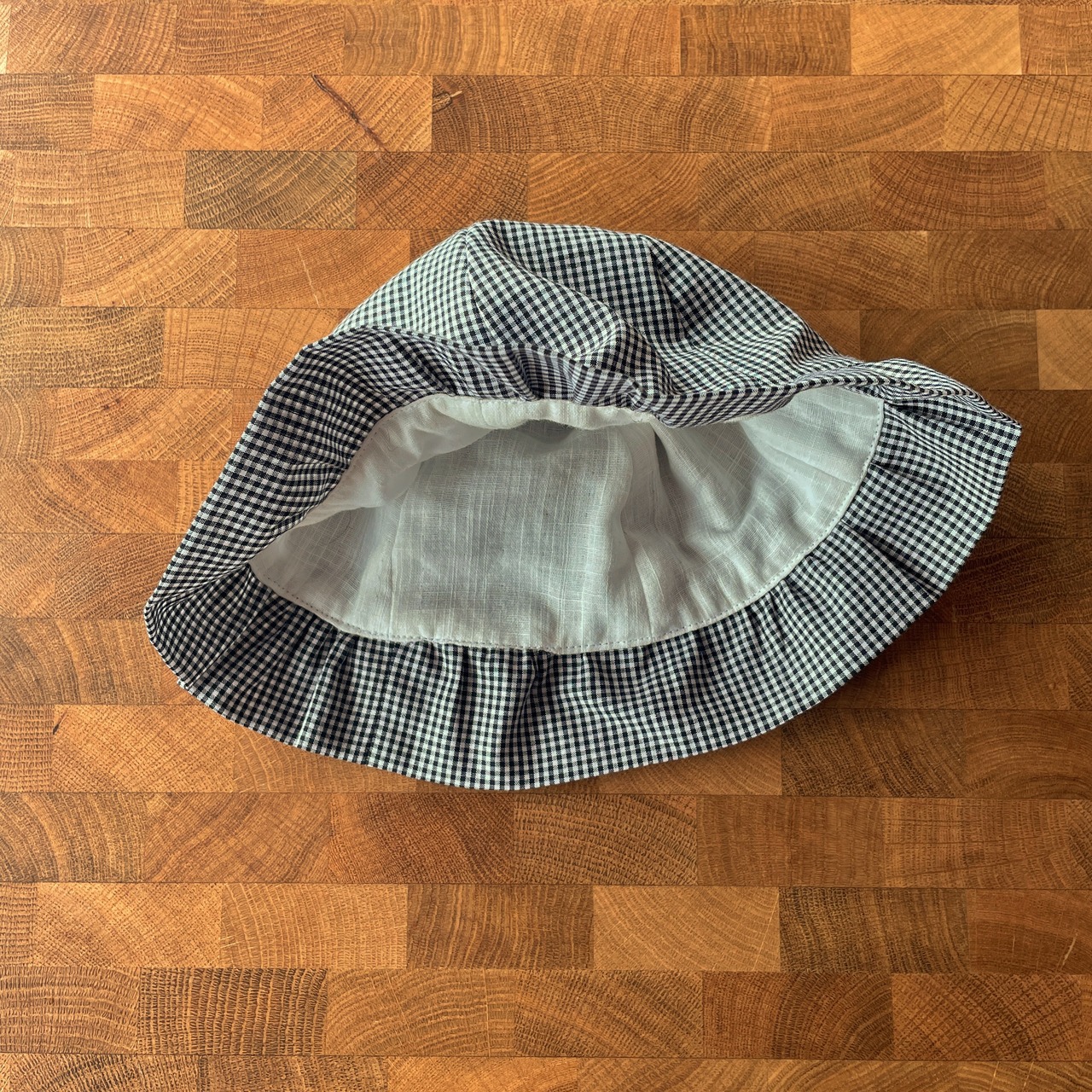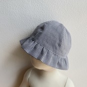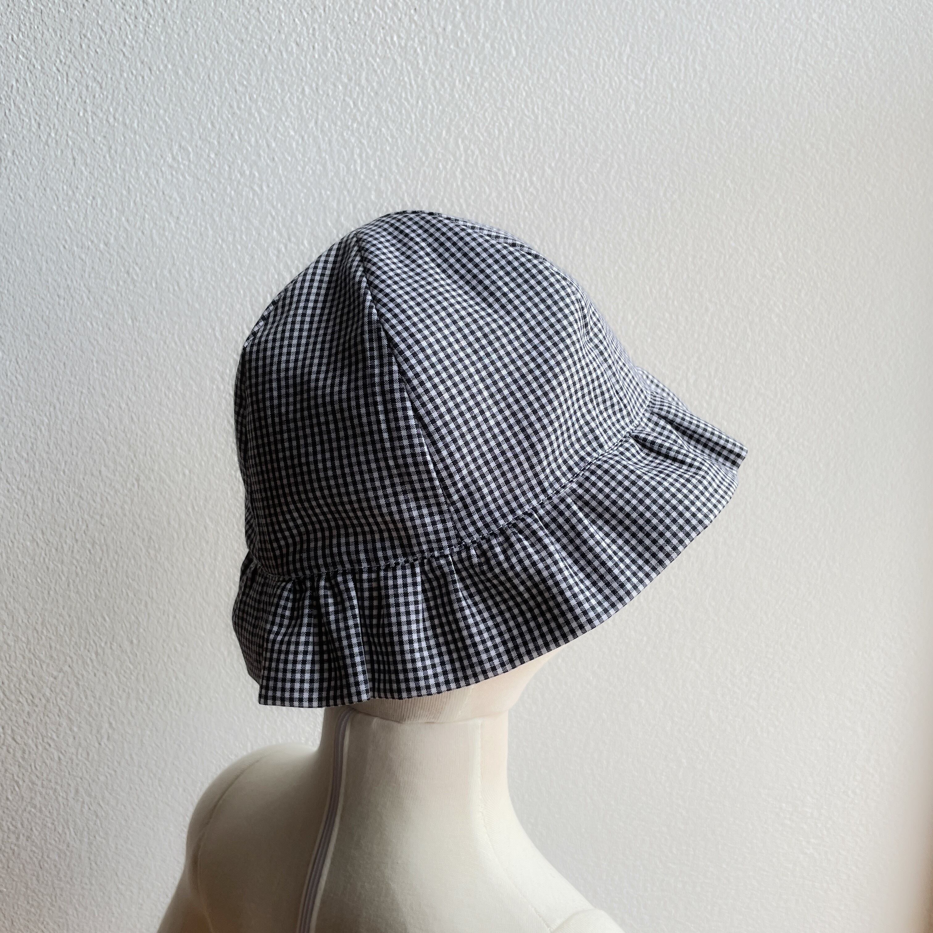 白黒の細かいギンガムチェックのやわらかく軽いコットンを使用した赤ちゃん帽子です。