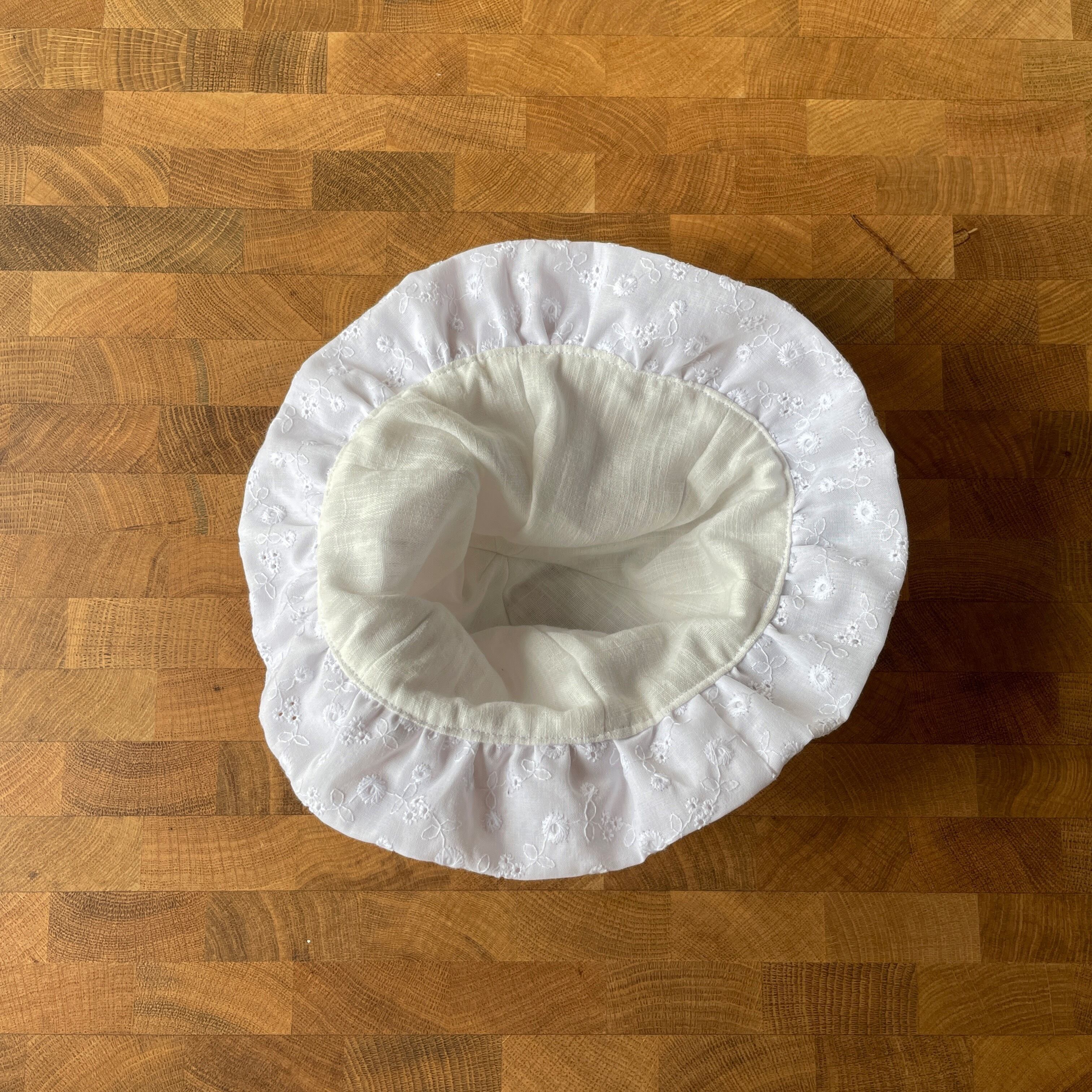頭に直接触れる裏側はホワイトのWガーゼ生地を使用しています。