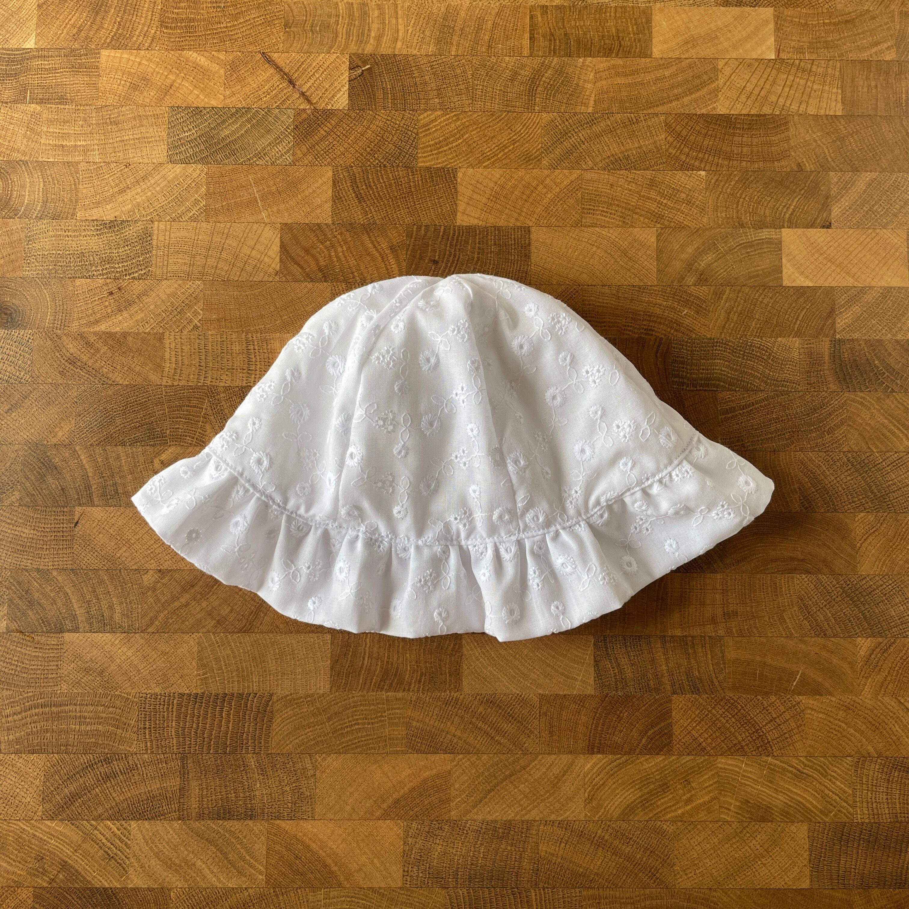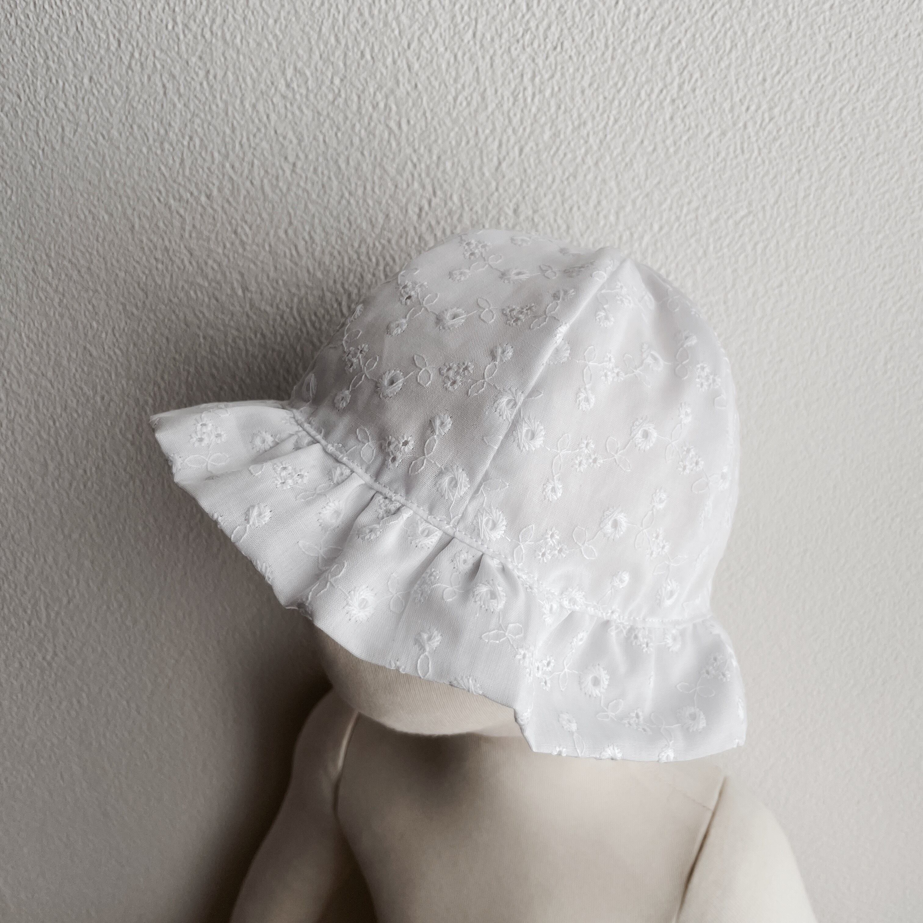 ブリムの控えめなフリルが赤ちゃんの顔周りを可愛く演出します。