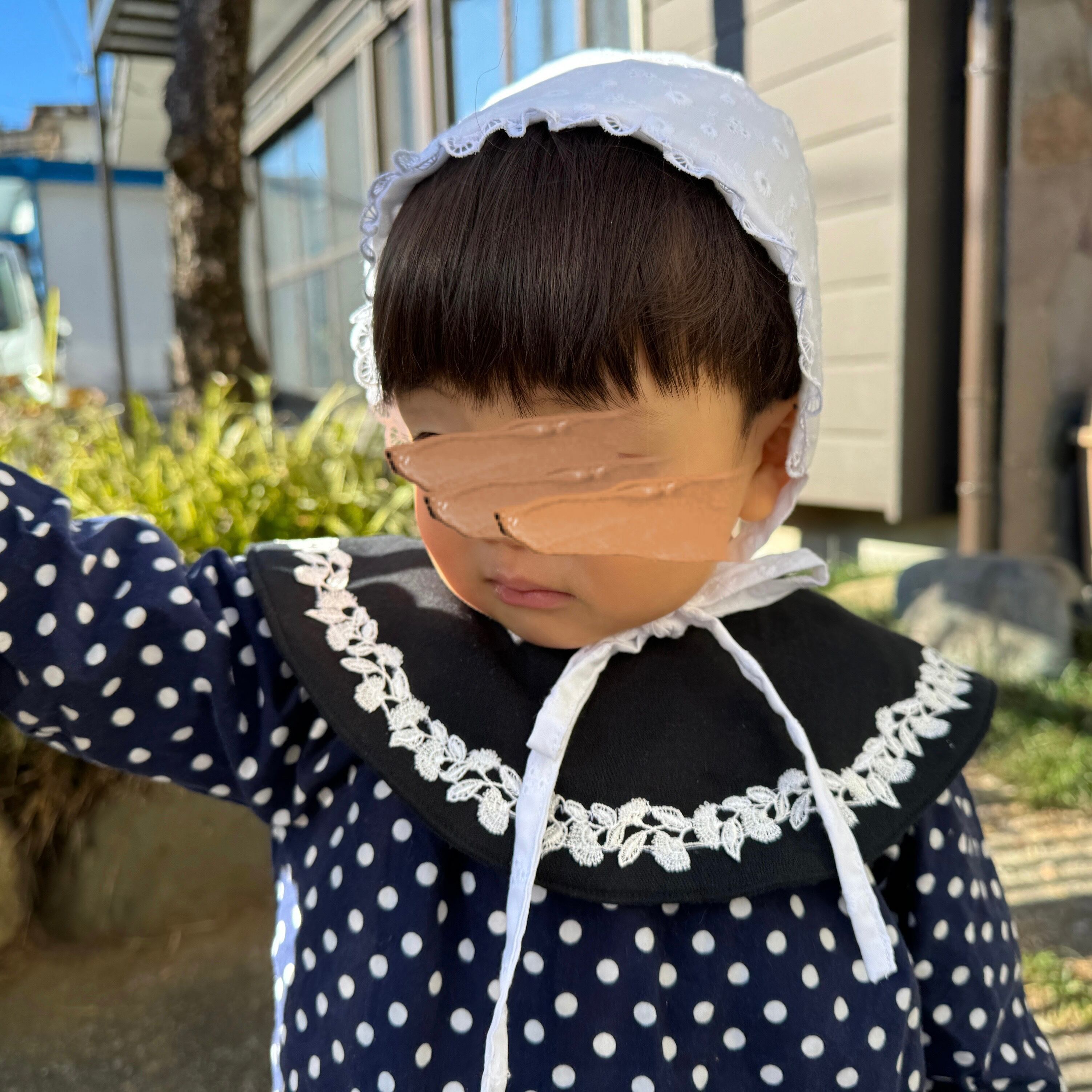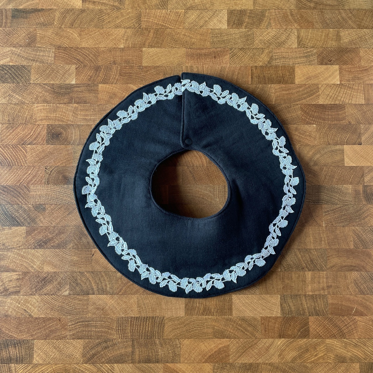 ぐるっと360°カバーできるドーナツ型で、濡れてしまったらくるくる回して使うことができます。つけ襟のように見え、機能性だけでなく見た目もかわいらしいのが特徴です。