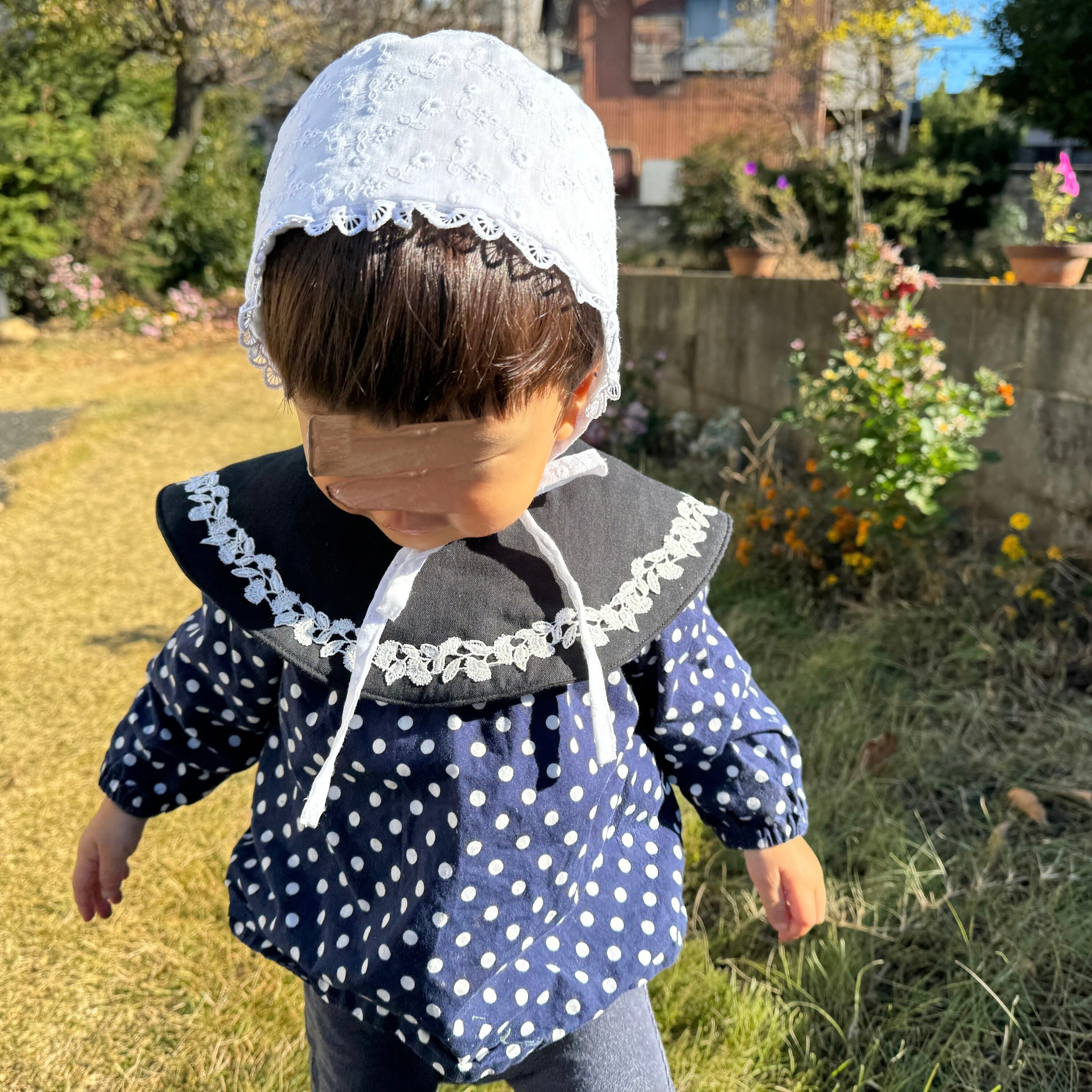 黒のWガーゼにドミット芯を挟んで型くずれしにくくふわっと仕上げたスタイです。