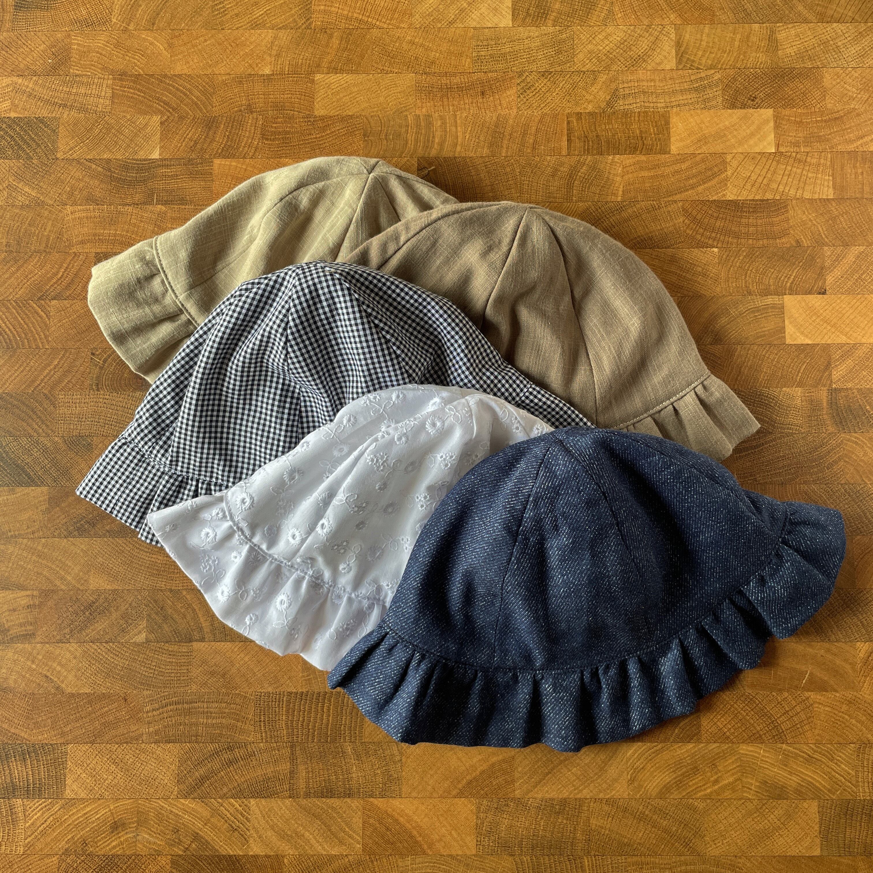 ブリムの控えめなフリルが赤ちゃんの顔周りを可愛く演出します。