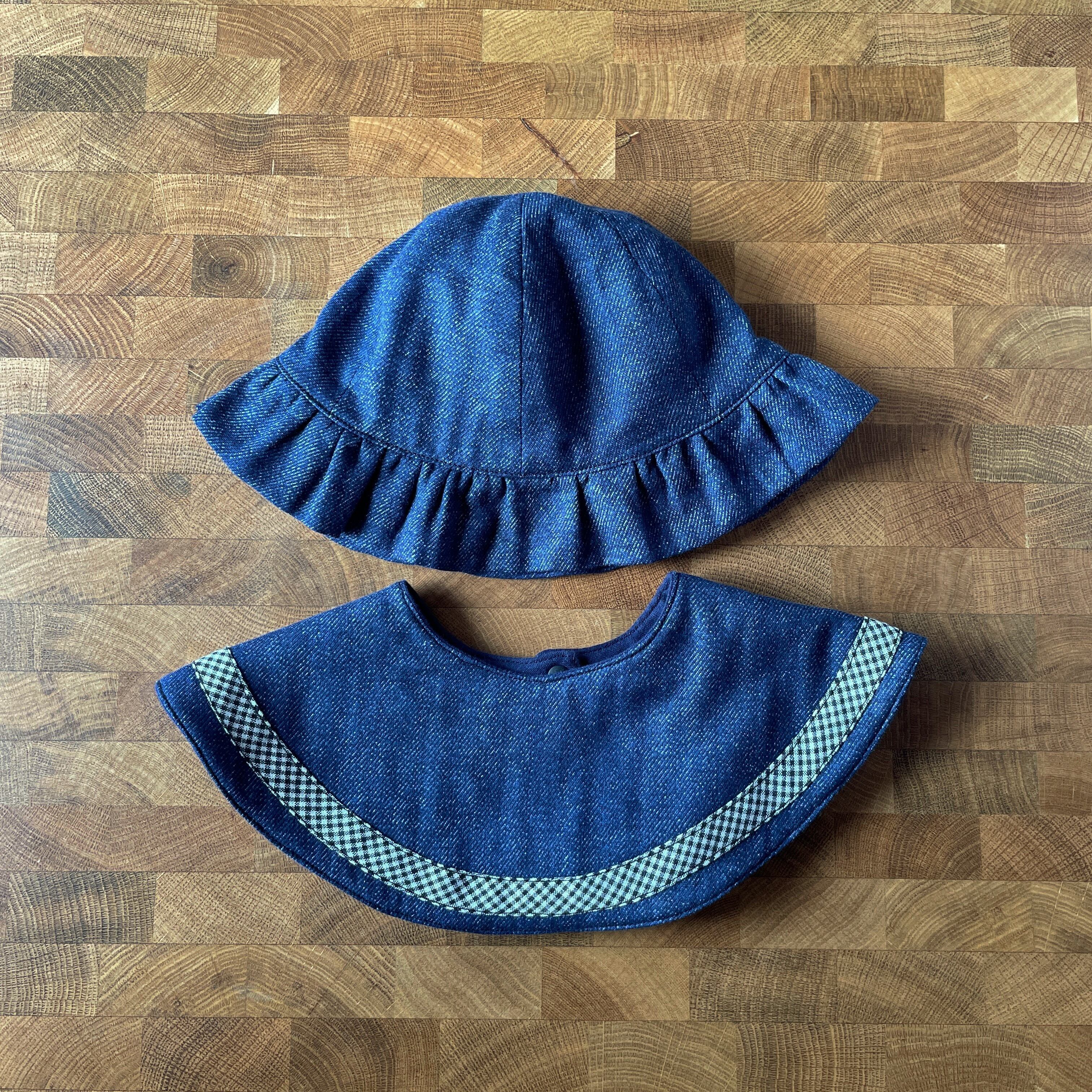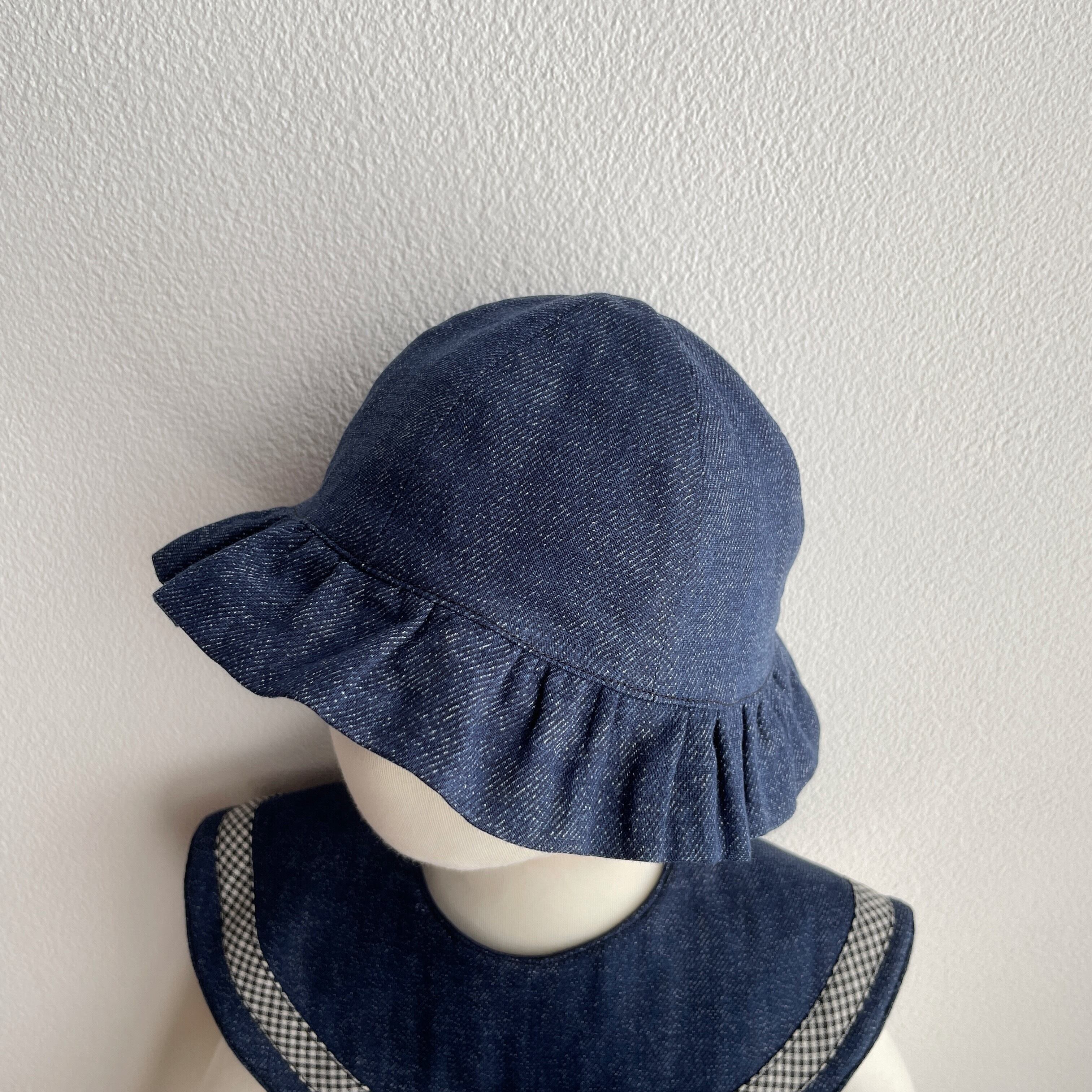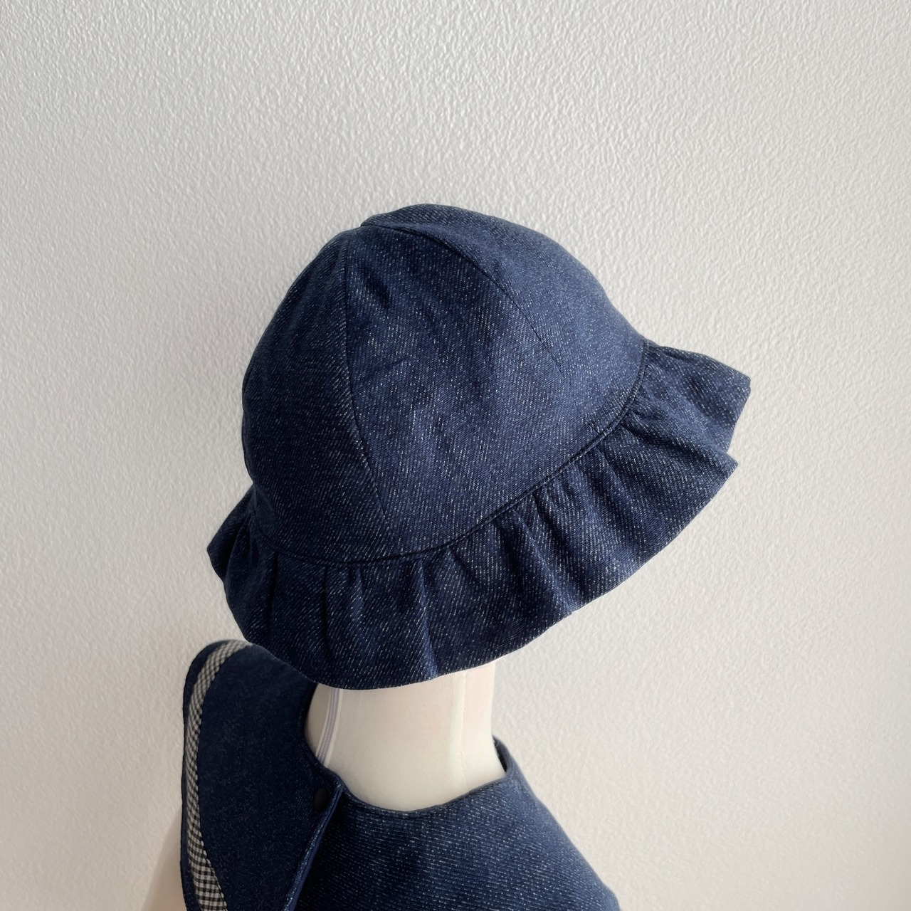 立っちするようになった赤ちゃんにおすすめのデニム調のWガーゼを使用した帽子です。