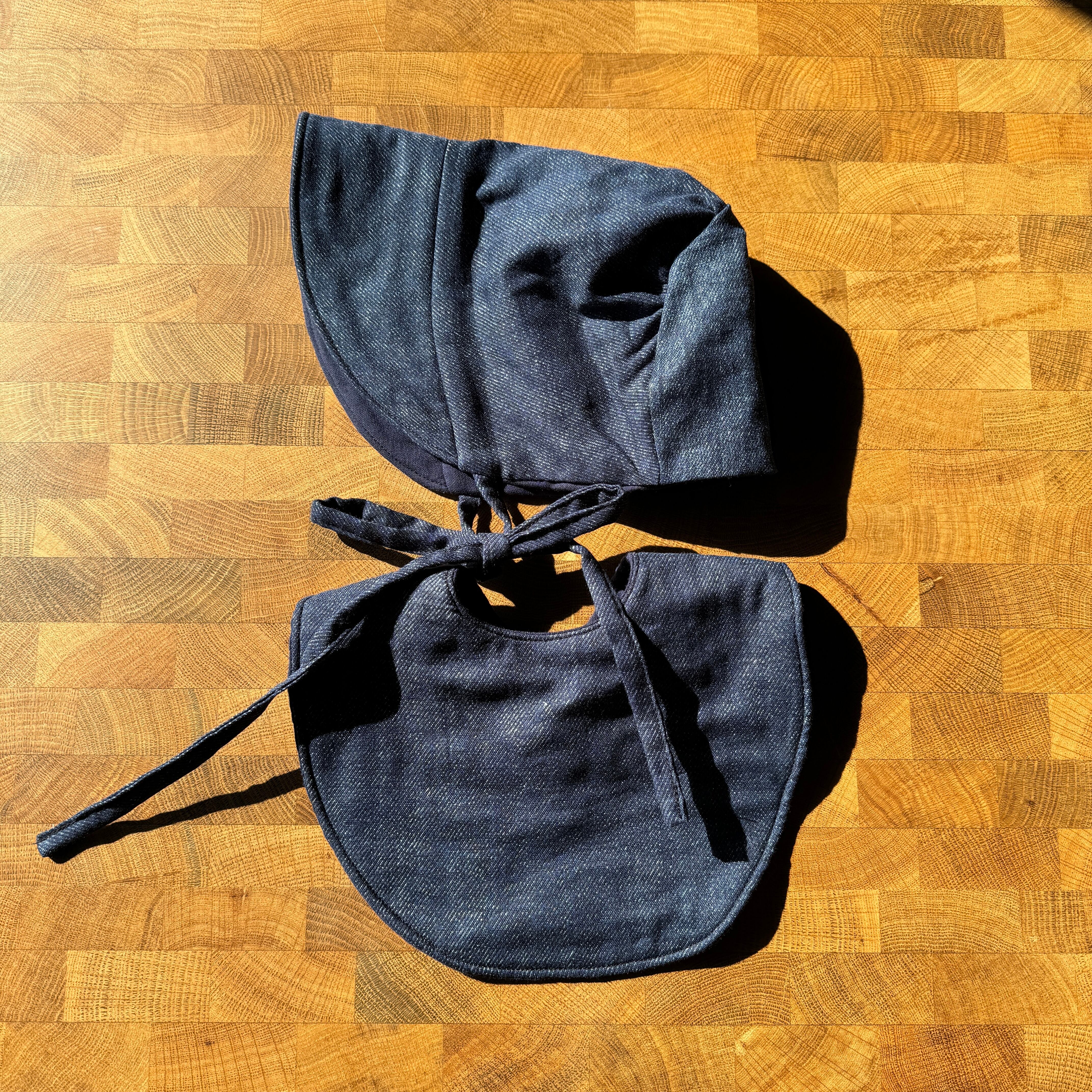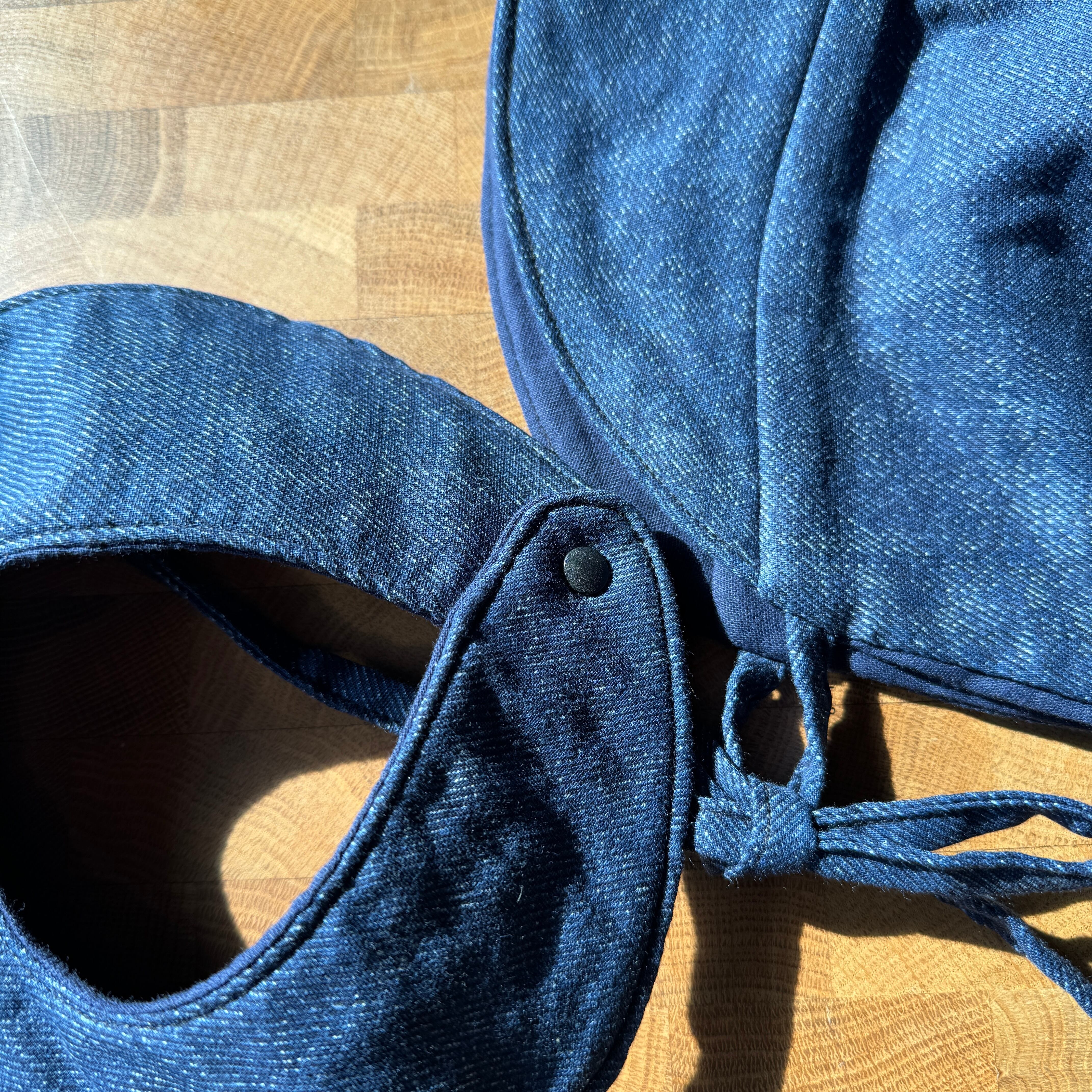 やわらかいボンネットと、ドミット芯を挟んで型くずれしにくくふわっと仕上げたスタイのセットです。