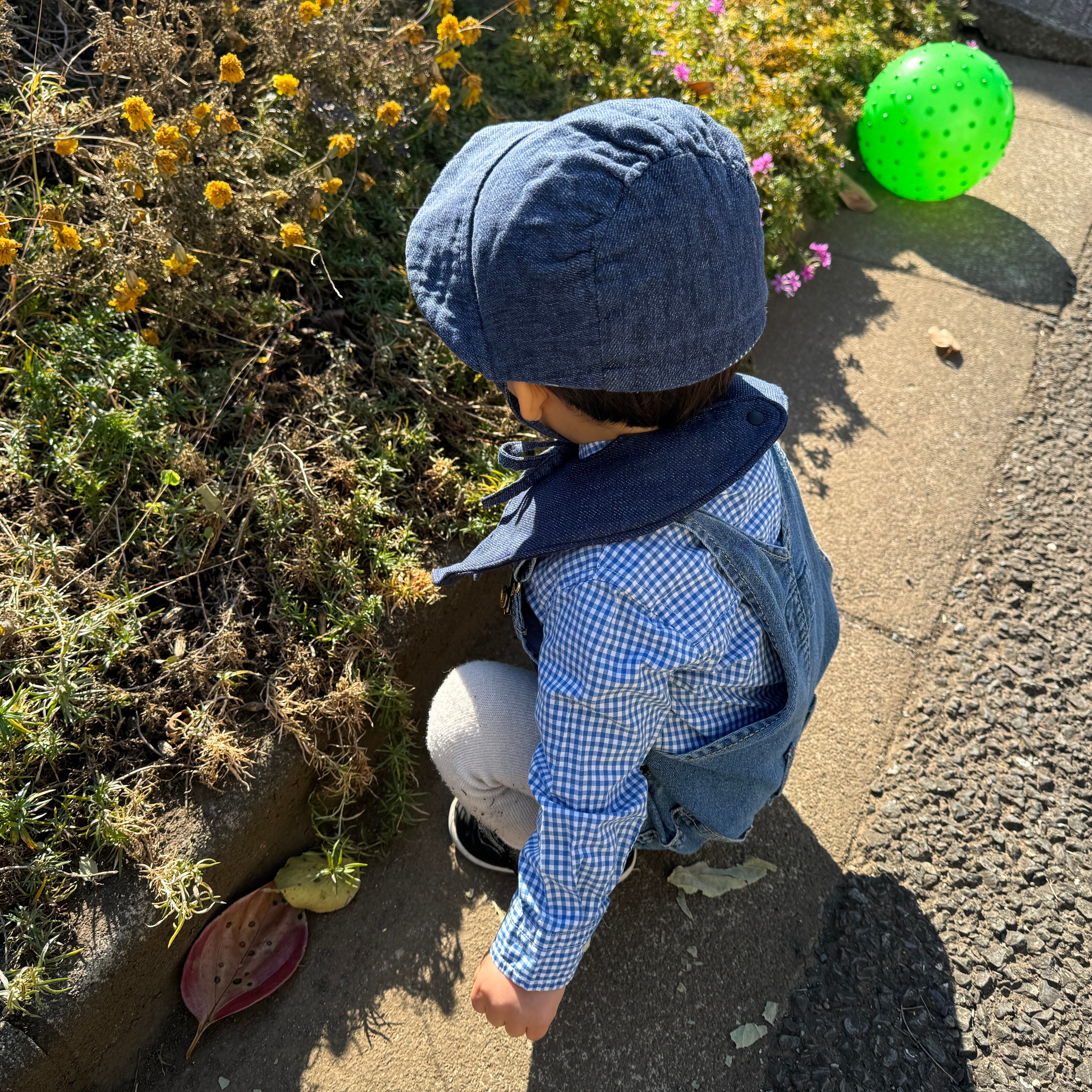 無地のデニムなので、どんなお洋服にも合わせやすく男の子にも女の子にもとてもおすすめです。