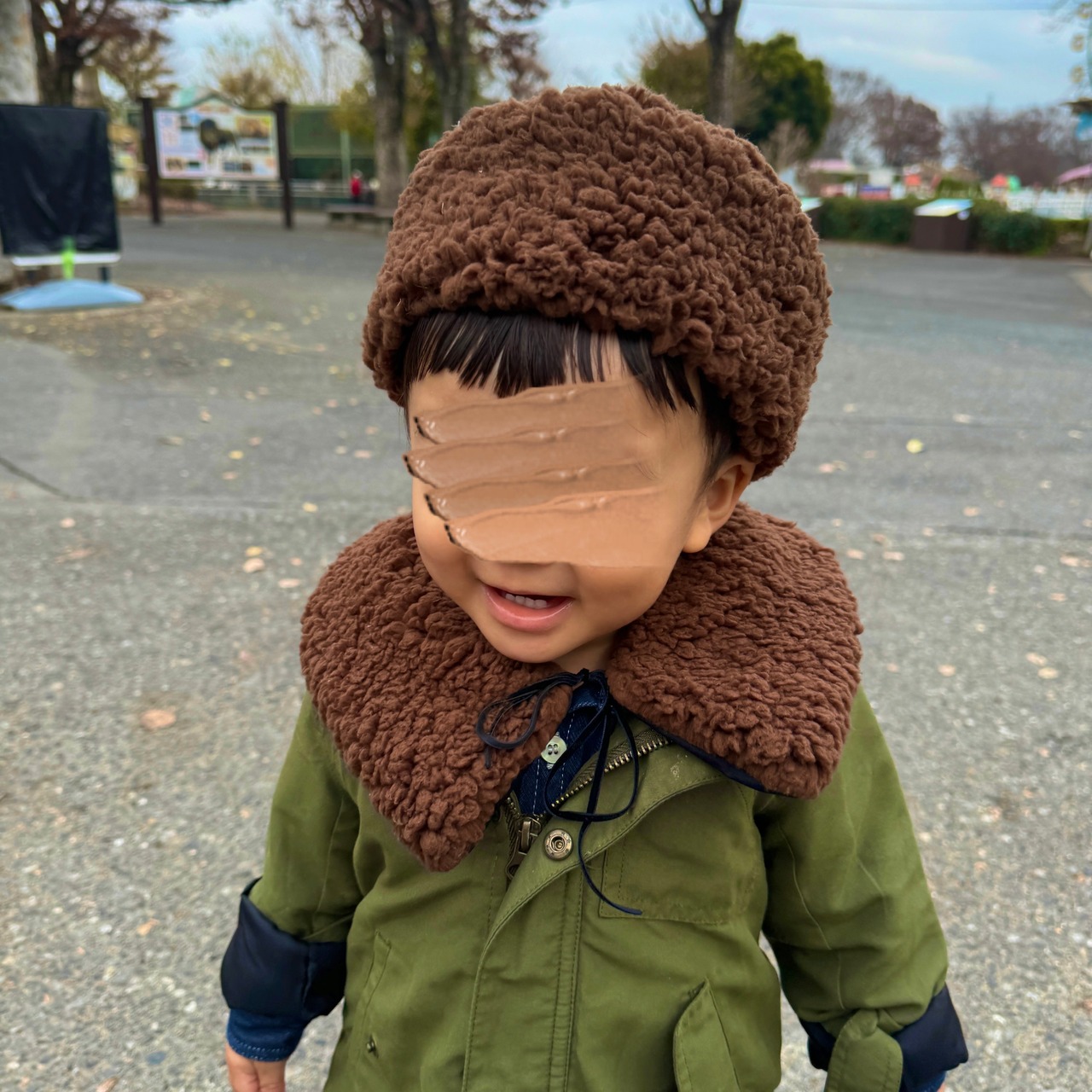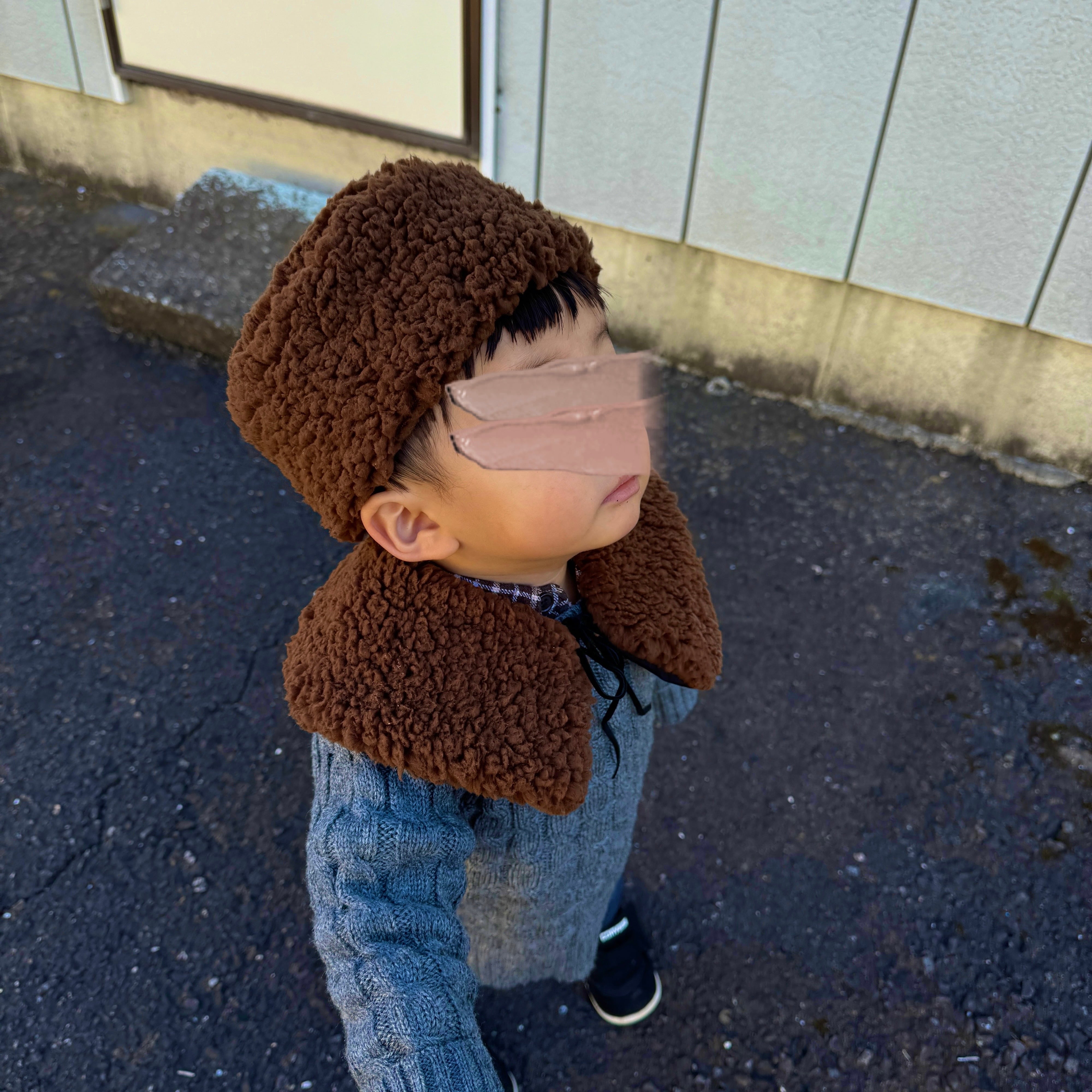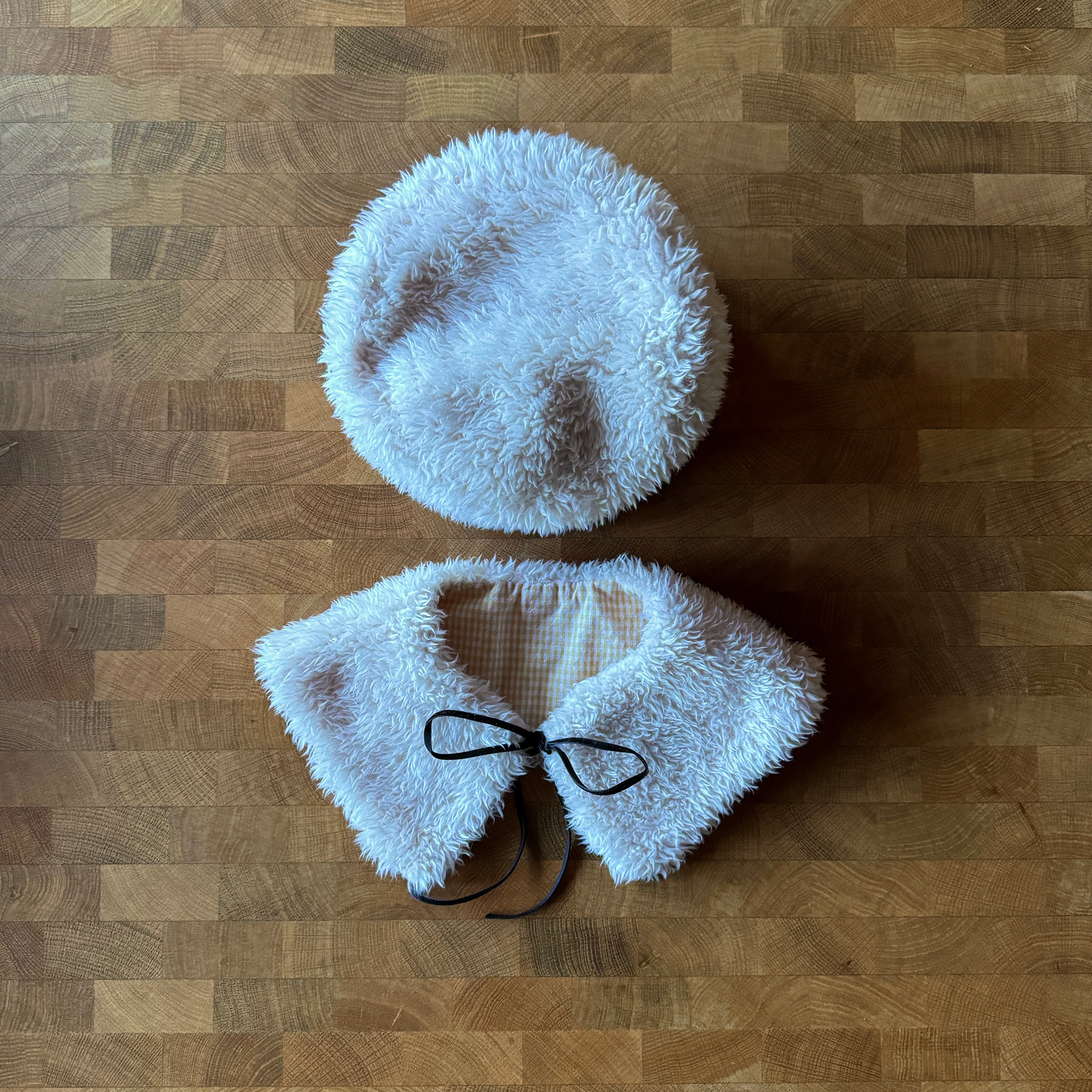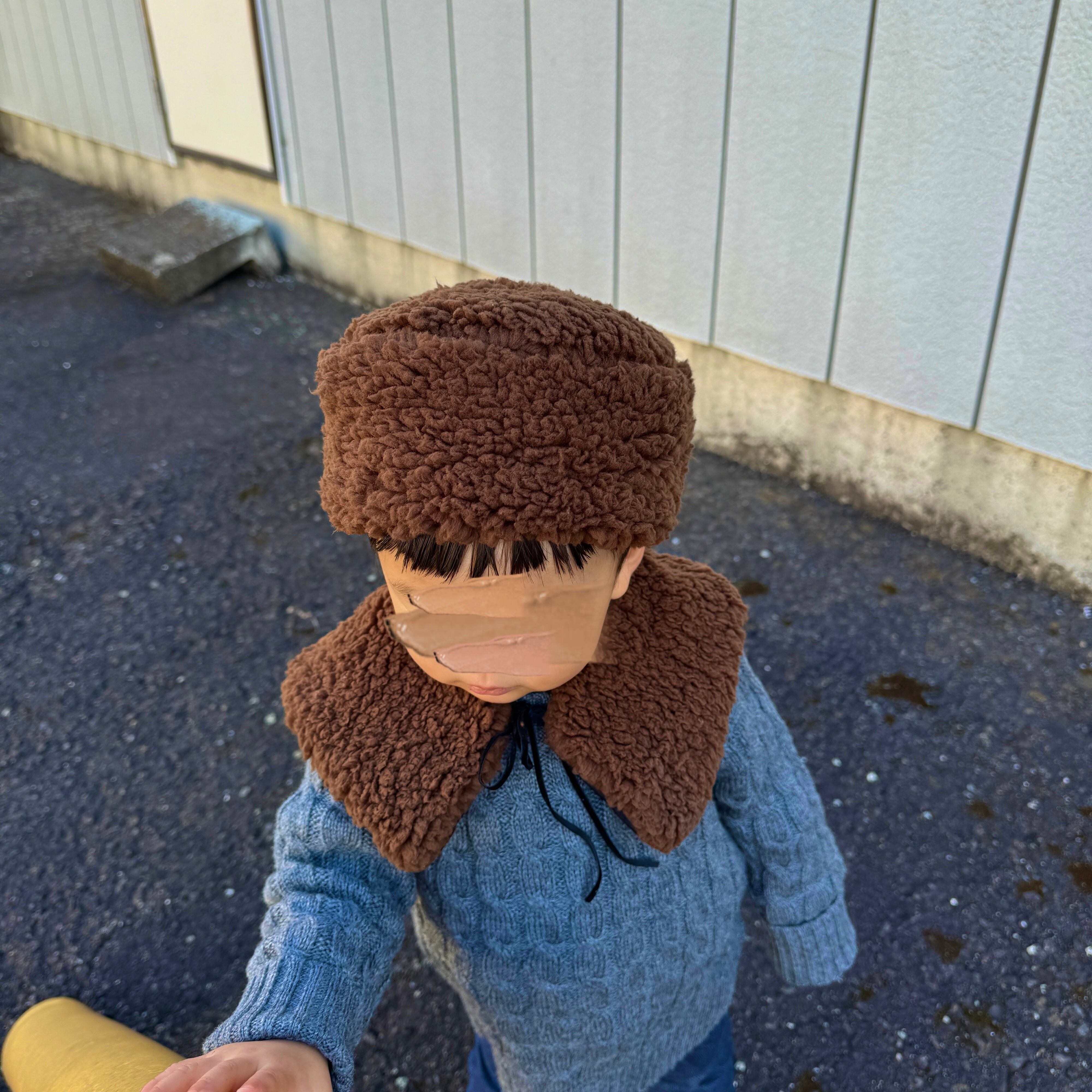 ふわふわシープボアのロシアンハットとつけ襟のセットです。