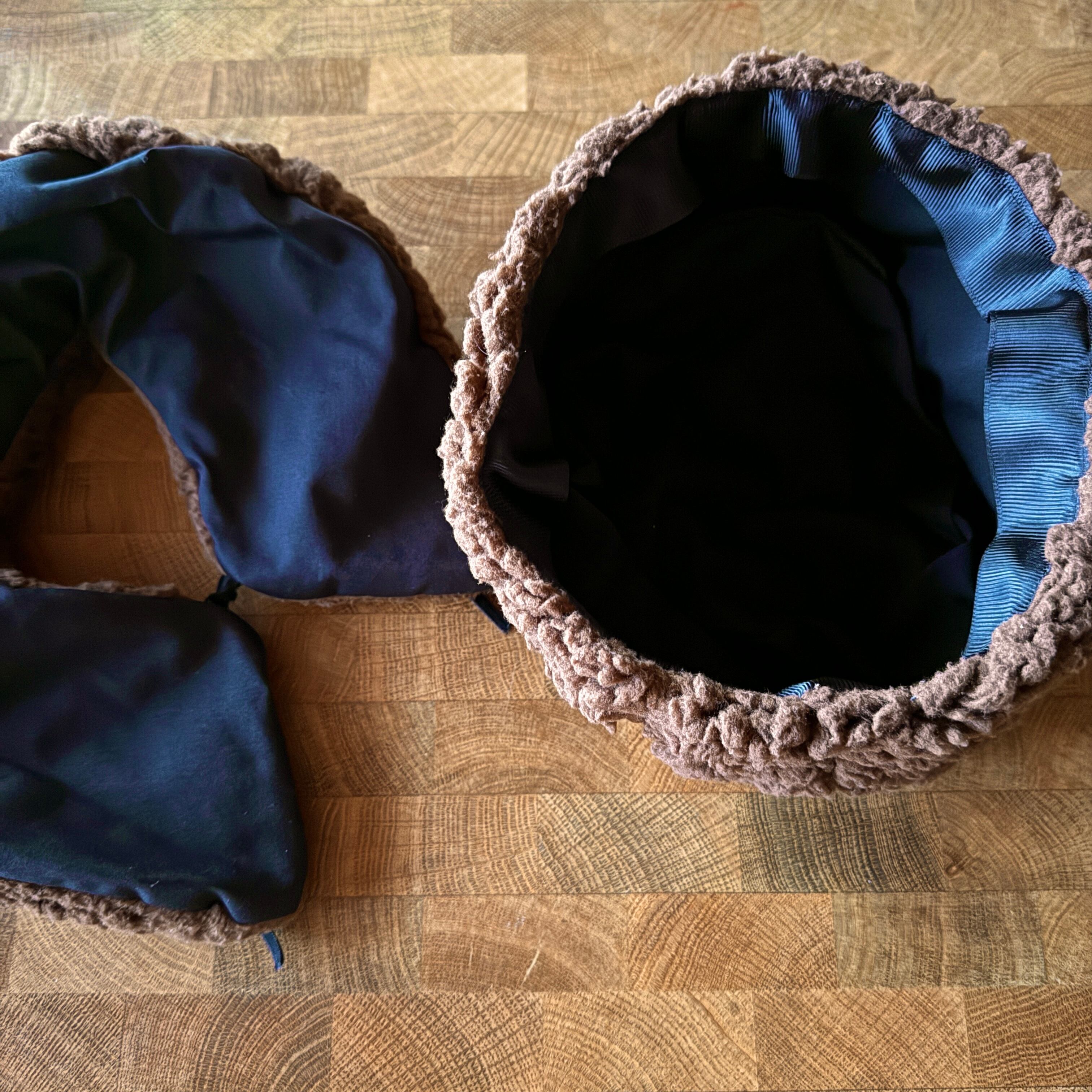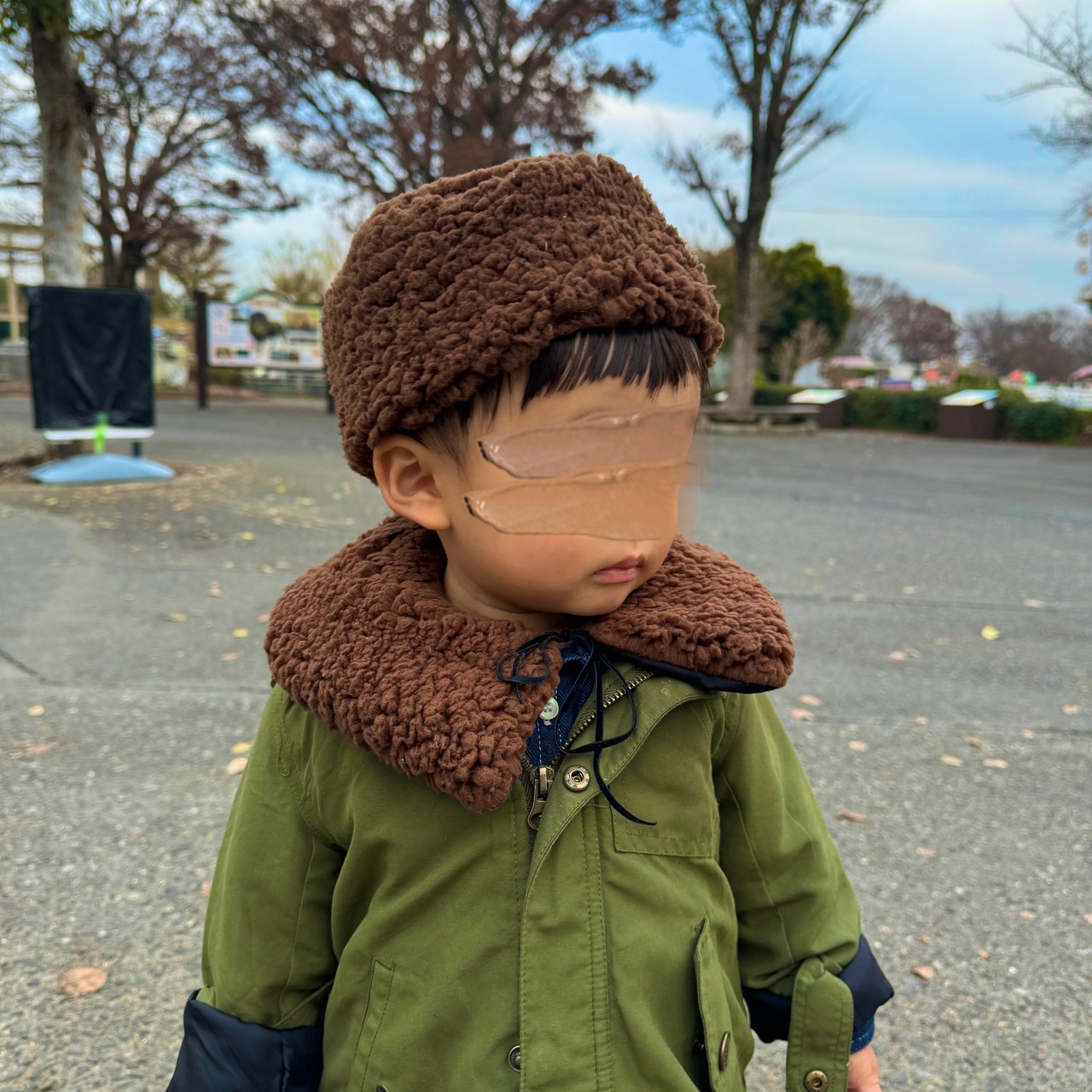 ふわふわシープボアのロシアンハットとつけ襟のセットです。